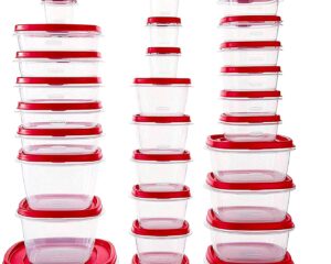 Lowest price ever on the Rubbermaid Easy Find Vented Lids Food Storage Containers, Set of 30 (that’s 60 pieces total). Get it right now for only $24.99! Built-in vent for splatter-resistant microwaving Lids snap together at bases to reduce clutter BPA free microwave safe and dishwasher safe Thick durable container walls for everyday use Set contains 30 assorted food containers and 30 lids for a