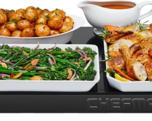 Hurry and grab the Chefman Electric Warming Tray for only $29.99! FEED THE WHOLE FAMILY: With a spacious 21” x 16” surface, this hot plate can fit several dishes at once; plus, it looks great on any countertop, table, or buffet in your home. The adjustable temperature control knob makes it suitable to keep any type of food warm for events like football games, holidays,