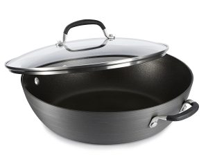 This is a great deal for a Calphalon pan: right now you can get the Simply Calphalon Nonstick 12-Inch All Purpose Pan for only $24.07. That’s the lowest price ever! Calphalon’s signature hard-anodized aluminum construction for excellent conductivity and even heatingThe interior surface is double-coated with Calphalon’s sturdy, reliable nonstick coating Tempered glass covers 2 loop handles that are contoured, cast stainless steel with silicone Oven
