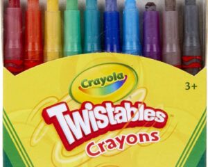 Great for use at home or school, Crayola Twistables Crayons add vibrant color to drawings and other creations. This fun set of mini crayons requires no peeling or sharpening–when their tips get worn down, simply twist them up and you’re ready to keep on coloring. Their clear plastic casing helps prevent breakage and makes it easy to see how much color is left. This 10-pack