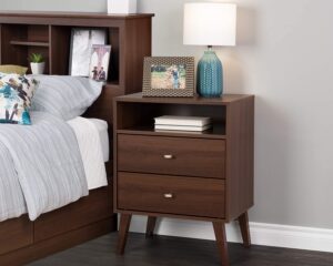 Prepac Milo Mid-Century Modern Nightstand, 2-Drawer with Open Shelf, Cherry $110.75