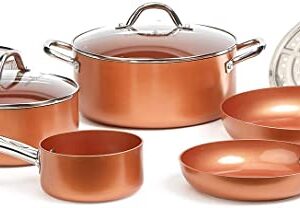 Upgrade your kitchen with Today’s Deal: Click here to save up to 30% off Copper Chef and Power XL Kitchen Essentials. Our original chef-style collection makes eating delicious, healthier meals faster and easier. Cerami-Tech Non-Stick Coating eliminates the need for added fats and oils. This Copper Chef Cookware 9-Pc. Round Pan Set, Aluminum and Steel with Ceramic Non-Stick Coating Cookware Set, Includes Lids, Frying