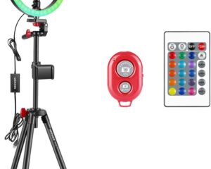 Light up the room when you click here to save on Neewer Ring Light Kit And Accessories today. Choose from lots of professional sets including varied lights, screens, and attachments to make your photography or videography the best it can be! This Neewer 12-inch RGB Ring Light Selfie Light Ring with Tripod Stand & Phone Holder, Infrared Remote Control, Dimmable 16 Colors & 4 Flash