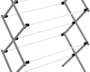 An electric clothes dryer can be way harsh on certain clothing. It can fade blue jeans, disintegrate fine lingerie, and shred vintage blouses. Help your delicate clothes go no-contact with the dryer by calling on this folding drying rack. With 24 linear feet to dry clothes, this rack’s coated steel rods gently support line-dry clothing, letting air circulate to keep garments fresh. When it’s time