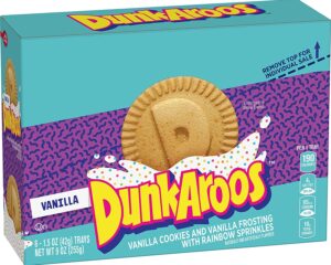 The most epic frosting and cookie dunking duo. Dunkaroos are back with the most beloved flavor: Vanilla Cookies and Vanilla Frosting with Rainbow Sprinkles. For a limited time, score these Dunkaroos, Vanilla Cookies and Vanilla Frosting, 6 ct, 9 oz for only $6.98! DUNKAROOS: Your favorite snack from the 90s is back, featuring delicious vanilla cookies and frosting COOKIES: The most epic frosting and cookie