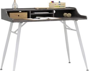 Calico Designs Woodford 45” Wide Modern, Secretary, Writing, Desk with Low Storage Hutch and Whtie Metal Tapered Legs in Marbled Dark Grey, White $89.59