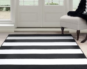 Lavish Home, Black/White Breton Stripe Area Rug, 4′ by 6′, 4′ x 6′ $39.22