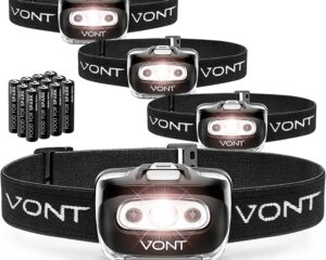 Vont ‘Spark’ LED Headlamp Flashlight (Batteries Included) Head Lamp Gear Suitable for Running, Camping, Hiking, Climbing, Fishing, Jogging, Headlight with Red Light, Headlamps – Adults, Kids (4 Pack) $19.99