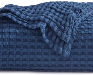 Bedsure 50% Cotton 50% Bamboo Blanket, Waffle Weave Throw Blanket for Couch Sofa, Soft Decorative Lightweight Blanket for All Seasons (Throw Size, 50 x 60, Navy) $22.09