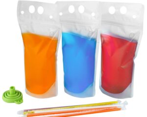 100PCS Drink Pouches with Straw Smoothie Bags Juice Pouches with 100 Drink Straws, Heavy Duty Hand-Held Translucent Reclosable Ice Drink Pouches Bag by C CRYSTAL LEMON $18.99
