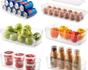 Set Of 6 Refrigerator Organizer Bins – Stackable Fridge Organizers for Freezer, Kitchen, Countertops, Cabinets – Clear Plastic Pantry Storage Racks $21.24