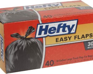 Hefty Easy Flaps Large Trash Bags are made with a thicker gauge plastic than other large black garbage bags. Tackle post-party pick-up, no matter how crazy last night got. Use the unscented trash bags to store clothes you’re not quite ready to part with or pack up those clothes for donations. These 30 gallon garbage bags are great for cleaning up your basement, garage and