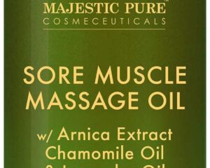 Majestic Pure 100% Natural Sore Muscle Massage Oil is a wonderful blend of essential oils, crafted to soothe sore, tired muscles. Designed for easy absorption, the oil’s natural scent helps melt away tension. Perfect for a relaxing massage, while leaving skin feeling nourished and hydrated. Click here for the MAJESTIC PURE Arnica Sore Muscle Massage Oil for Body – Best Natural Therapy with Lavender and