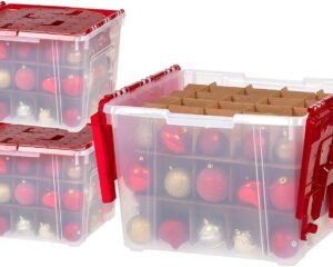 IRIS USA WL-60 Holiday Ornament Storage Box with dividers, 3 Count, Clear/Red, 3 Count $61.24