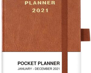 2021 Pocket Calendar – Weekly & Monthly Pocket Planner, January 2021 – December 2021, Elegant Leather with Pen Hold, Inner Pocket, Banded, 6.4″ x 3.9″ $5.69