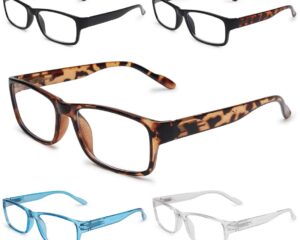 GAOYE 5-Pack Reading Glasses Blue Light Blocking with Spring Hinge,Readers for Women Men Anti Glare Filter Lightweight Eyeglasses (5-Pack, 4.0) $11.99